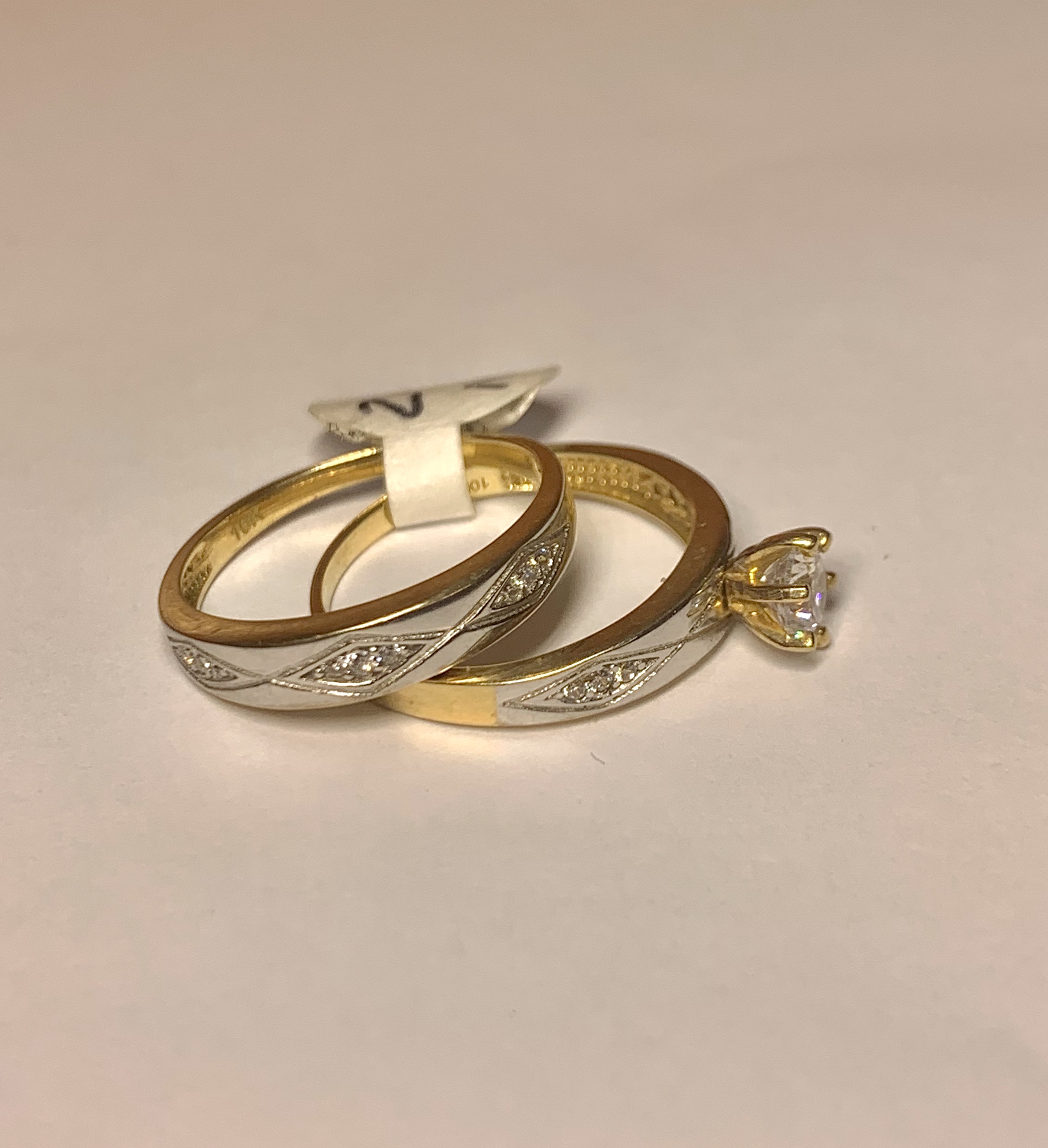 Juego de boda para dama 10k oro amarillo con circones de alta calidad. Son dos anillos, uno para compromiso y el otro para la ceremonia de boda.