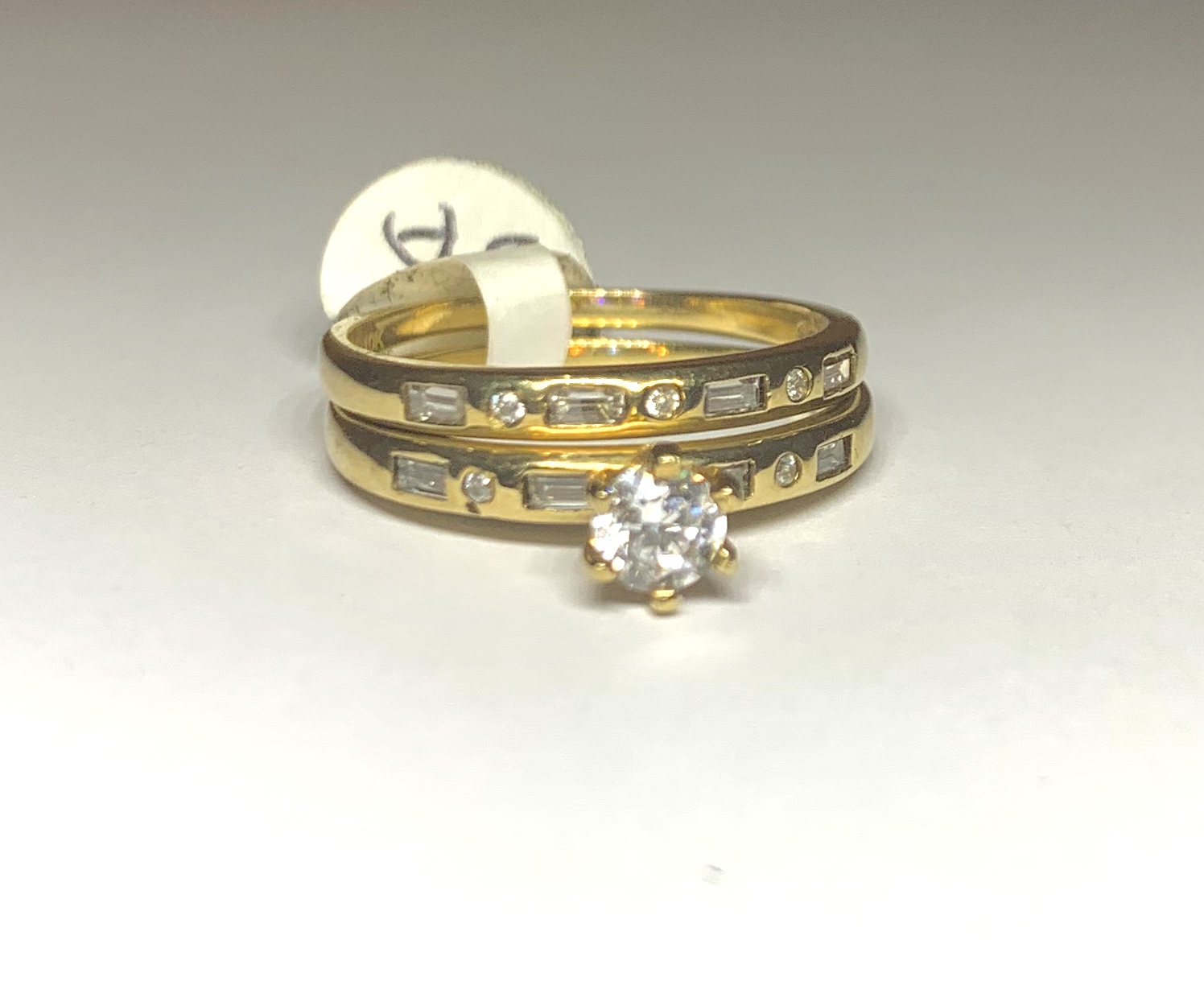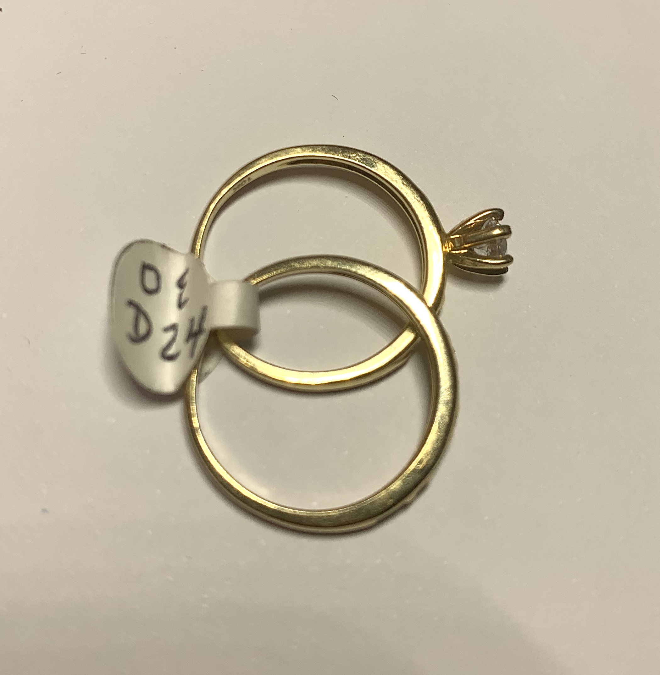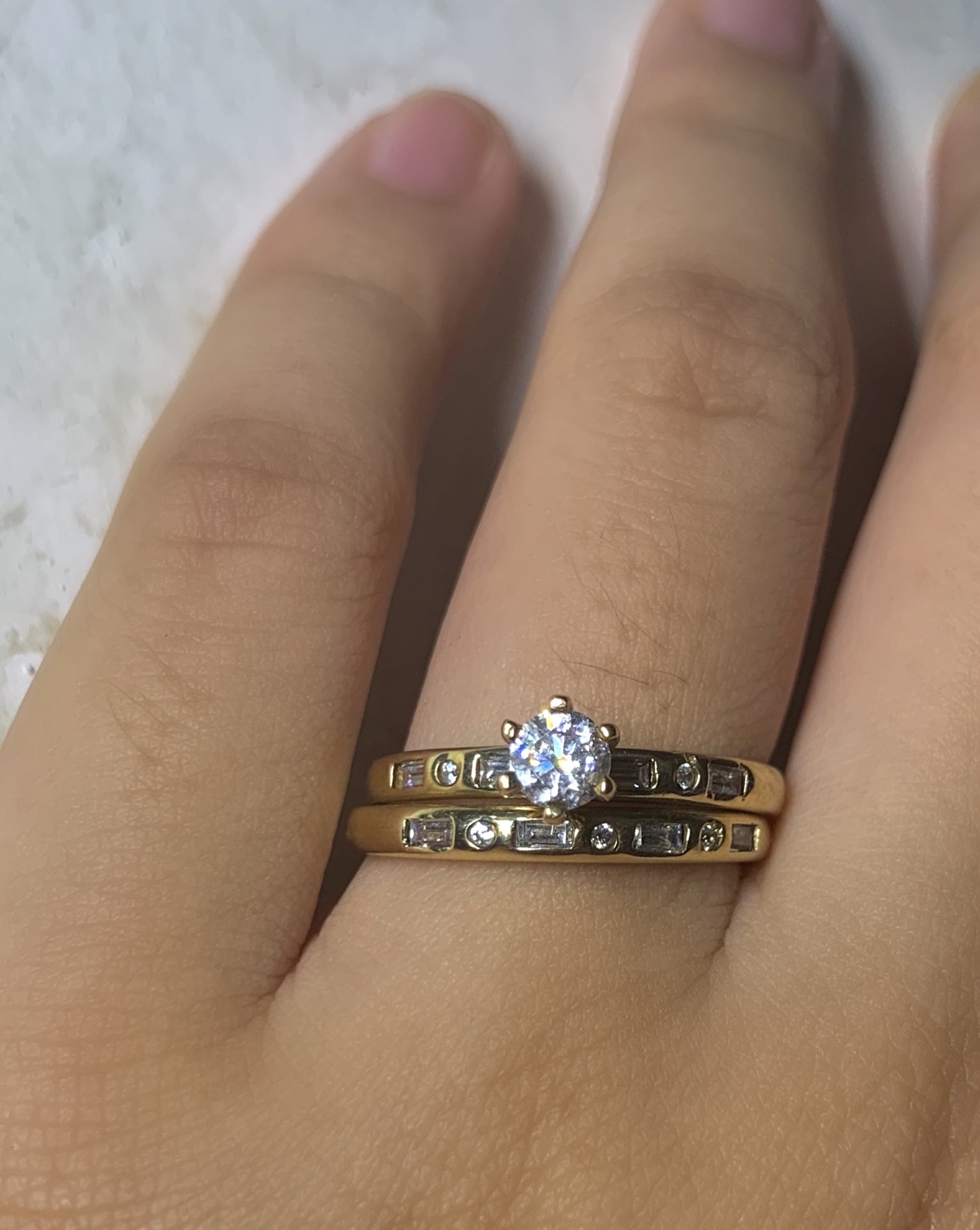 Juego de boda para dama 10k oro amarillo con circones de alta calidad. Son dos anillos, uno para compromiso y el otro para la ceremonia de boda.